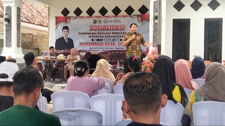 Anggota Komisi I DPRD Provinsi Lampung, Mohammad Reza Berawi, kembali turun langsung ke masyarakat melalui kegiatan Sosialisasi Pembinaan Ideologi Pancasila dan Wawasan Kebangsaan (PIP-WK) ke-1 Tahun 2026.